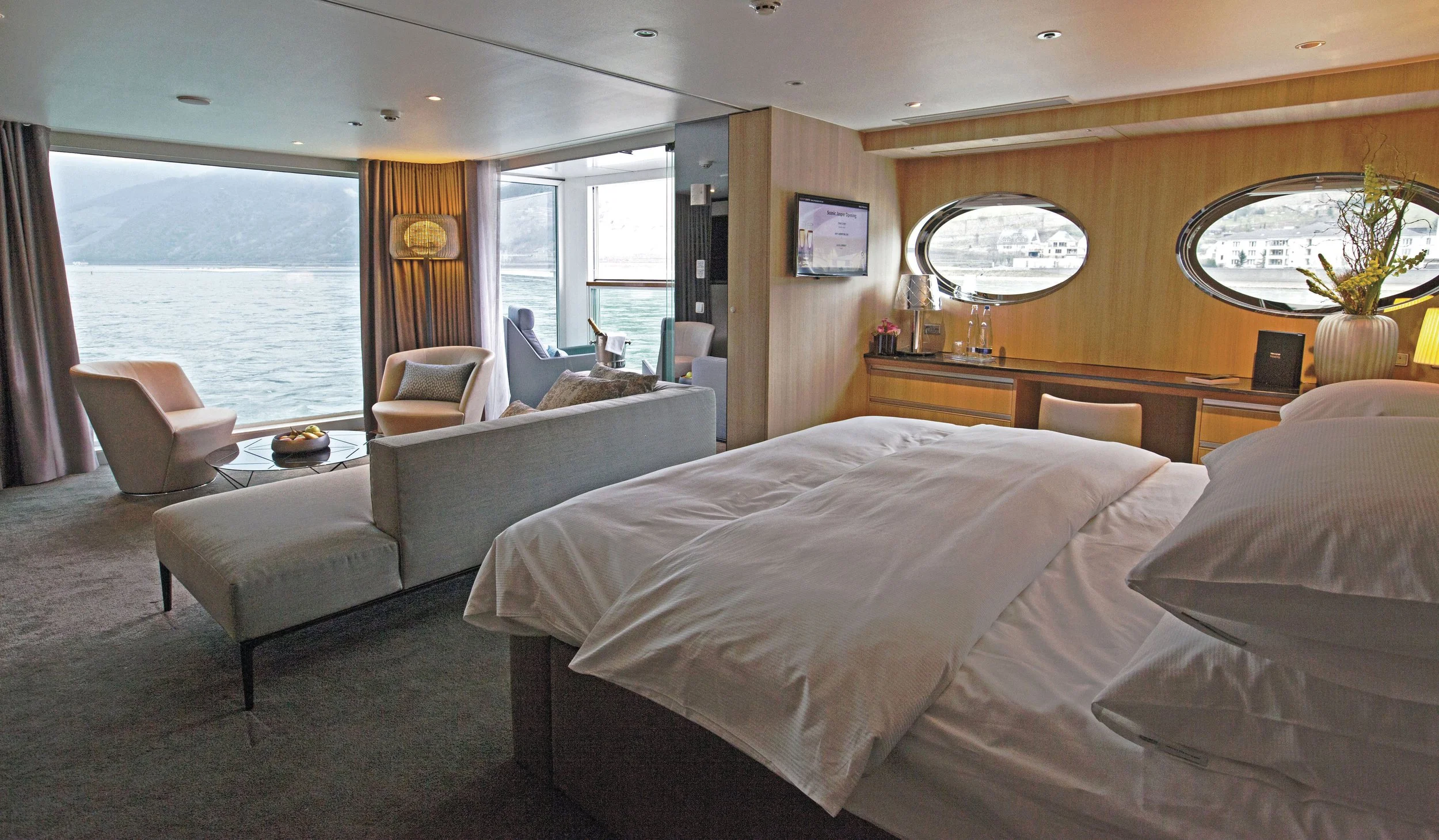 Located on the Jewel Deck, these suites feature butler service, early morning tea and coffee service and a picture window to gaze out at the passing views.
